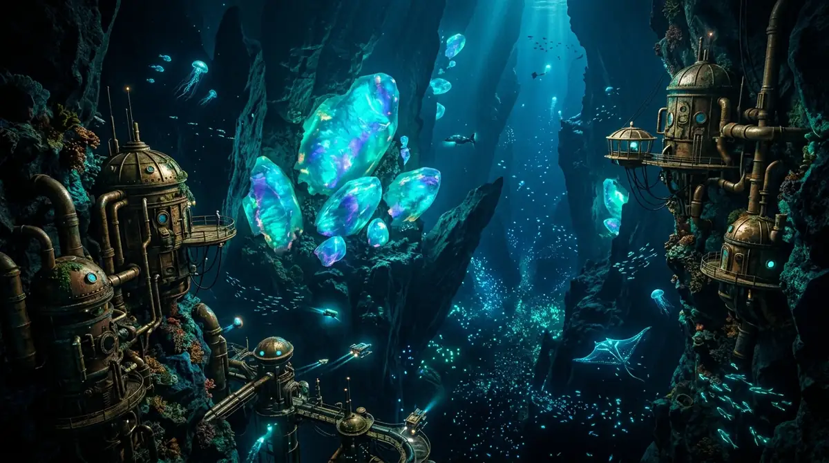 Showcases the Luminaries' core technology: manipulating raw opal energy through refined geometry.
